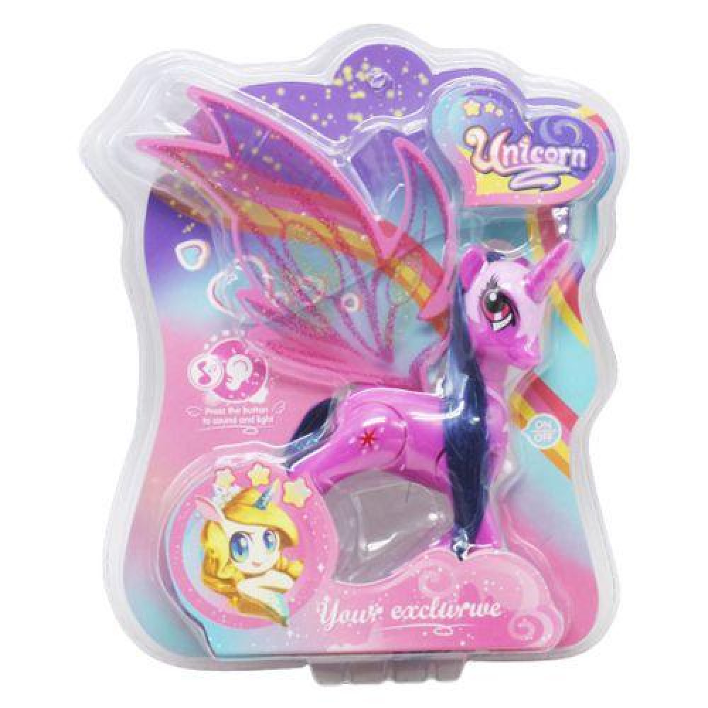 Милая лошадка-пони будет отличным подарком. У лошадки длинная, шелковистая грива и хвост, красивые прозрачные крылья, а так же рог, как у единорога. У игрушки есть световые и звуковые эффекты (активируються при нажатии кнопки на груди. Размер лошадки (без крыльев) - 15х12х4 см. Выполнена из прочного пластика. Для детей от 3-х лет.