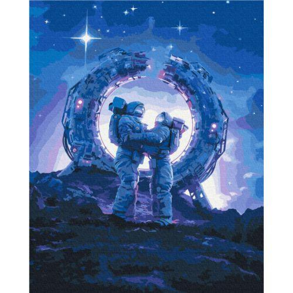 Холст на подрамнике с галерейной натяжкой, бумажная копия с контурным рисунком картины, нейлоновые кисти, палитра акриловых красок в контейнерах, крепление |
