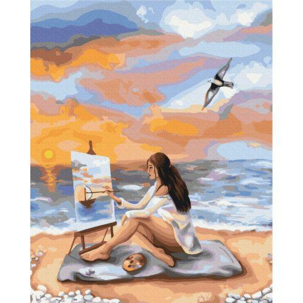 Холст на подрамнике с галерейной натяжкой, бумажная копия с контурным рисунком картины, нейлоновые кисти, палитра акриловых красок в контейнерах, крепление |