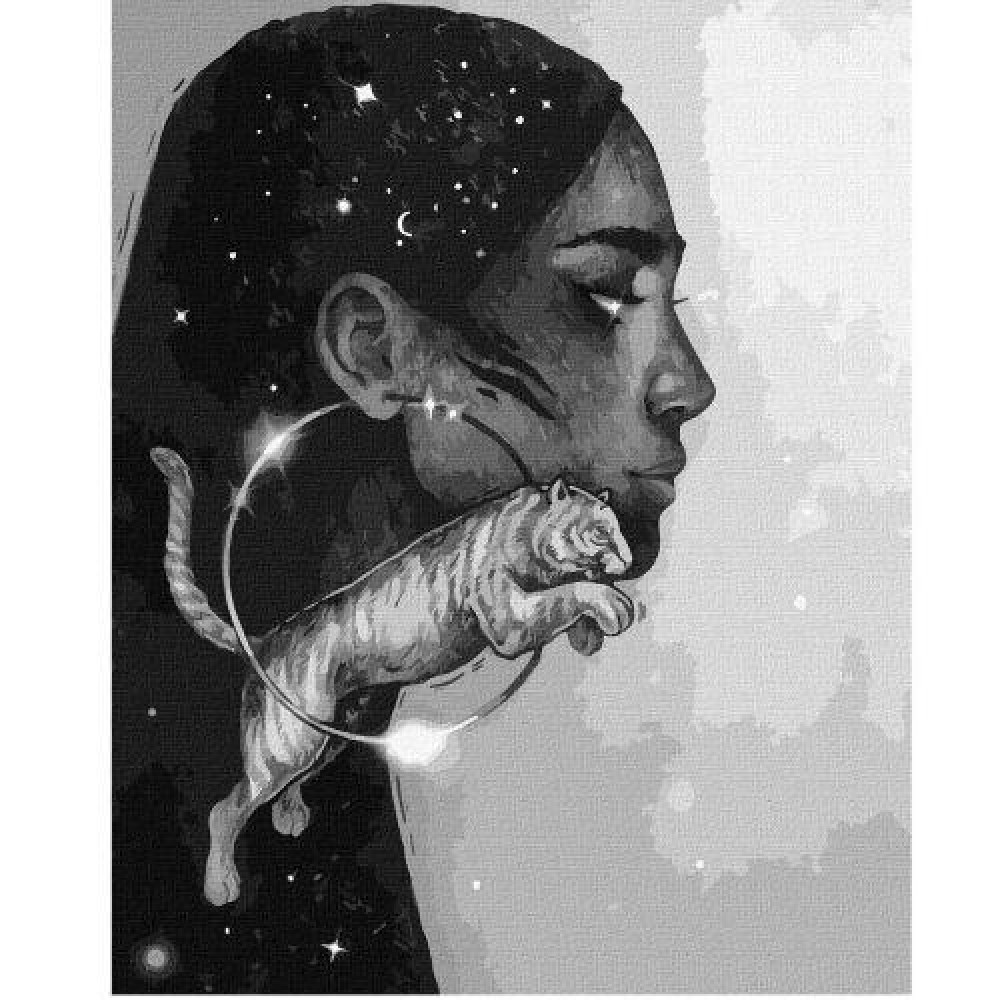 Холст на подрамнике с галерейной натяжкой, бумажная копия с контурным рисунком картины, нейлоновые кисти, палитра акриловых красок в контейнерах, крепление |