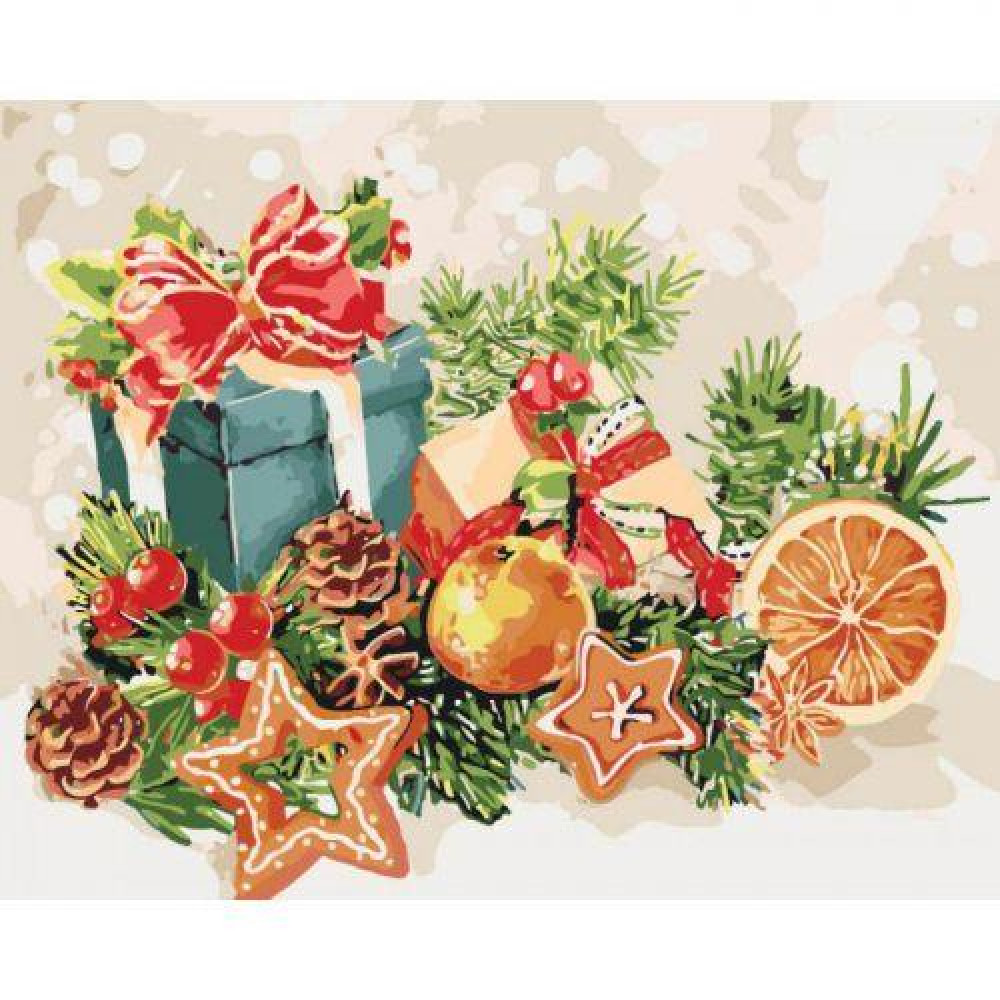 Холст на подрамнике с галерейной натяжкой, бумажная копия с контурным рисунком картины, 3 нейлоновых художественных кисти, палитра акриловых красок в контейнерах, крепление |