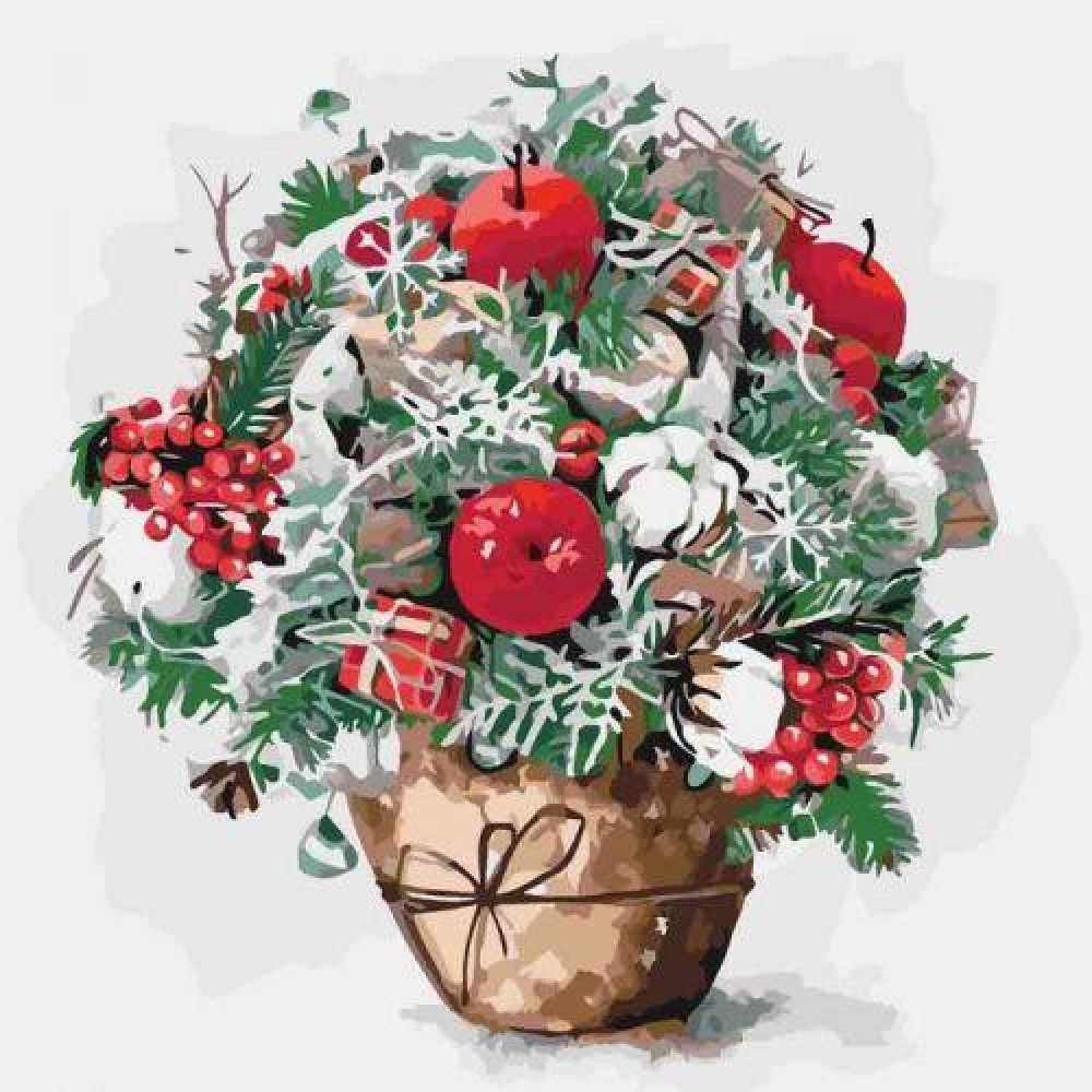 Холст на подрамнике с галерейной натяжкой, бумажная инструкция с контурным рисунком картины, 3 нейлоновые художественные кисти, палитра акриловых красок в контейнерах, крепление |