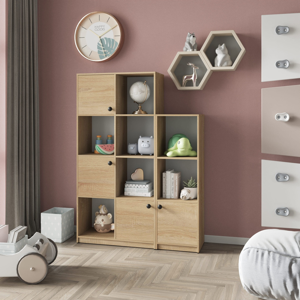 Книжный шкаф на 11 ячеек с дверцами на 11 полок Дуб Сонома