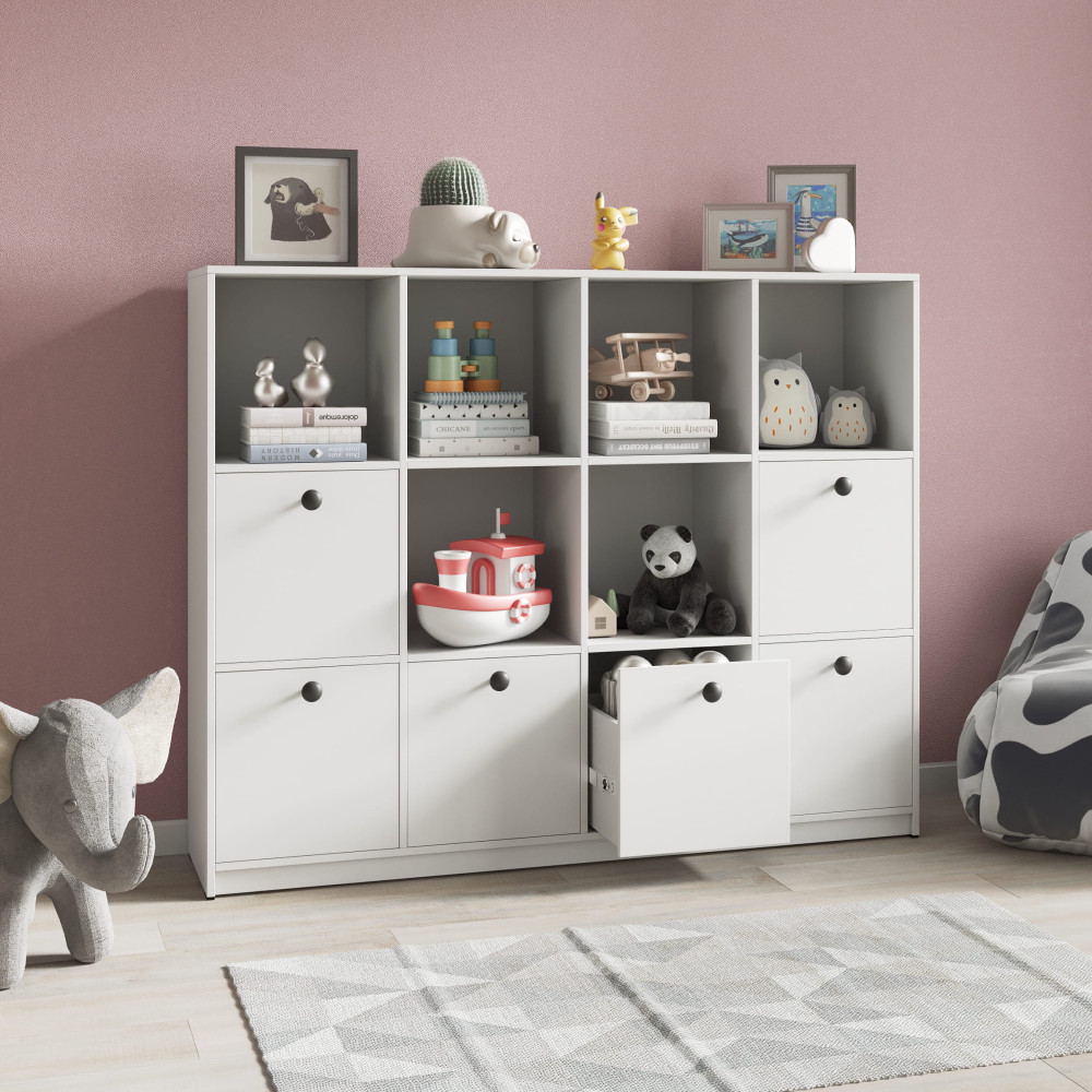Книжный шкаф на 6 ячеек и 6 ящиков Белый