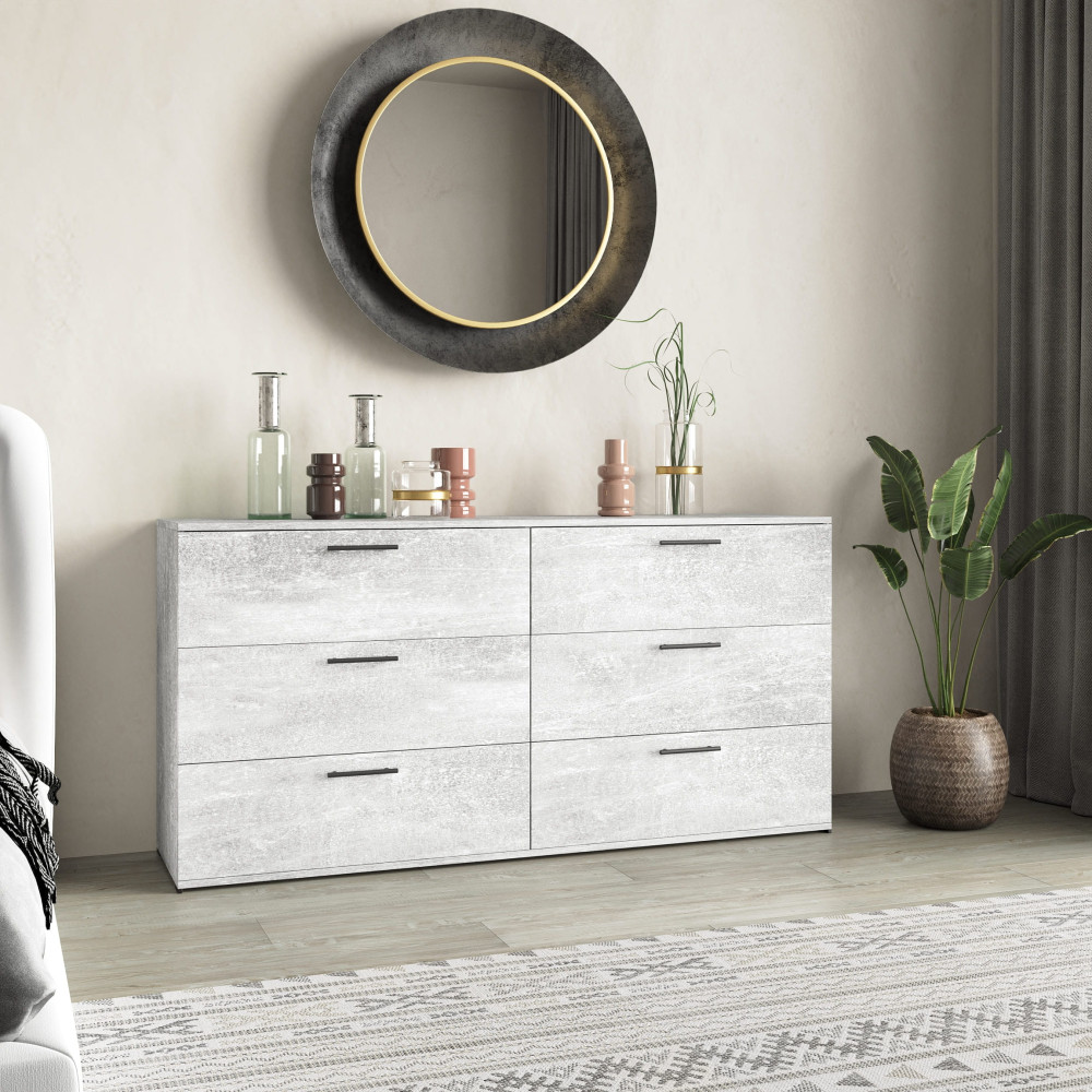 Комод для одежды на 6 ящиков с ручками на 6 ящиков Бетон