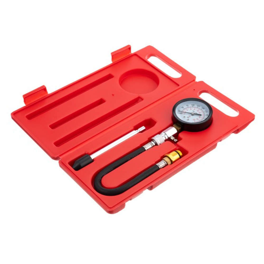 Компрессометр INTERTOOL AT-4001 применяется для измерения значения компрессионного давления в бензиновых двигателях. Наличие компрессометра помогает автовладельцу выявить нарушения в работе двигателя его автомобиля на самой ранней стадии, что позволит избежать серьезных поломок. АТ-4001 состоит из манометра, надежного шланга с двумя адаптерами и штока с конусообразным адаптером из резины. Для удобства он также комплектуется пластмассовым чемоданом, который способствует удобному хранению и транспортировке. Прибор выполнен очень качественно, поэтому купить компрессометр AT-4001 – отличное решение, соотношение цены и качества вас приятно удивят.