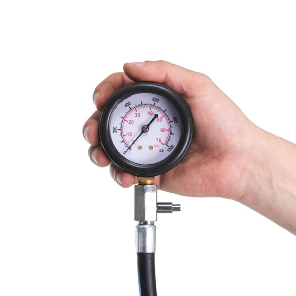 - Компрессометр оснащен прочным и гибким шлангом с золотником для удобства подключения.