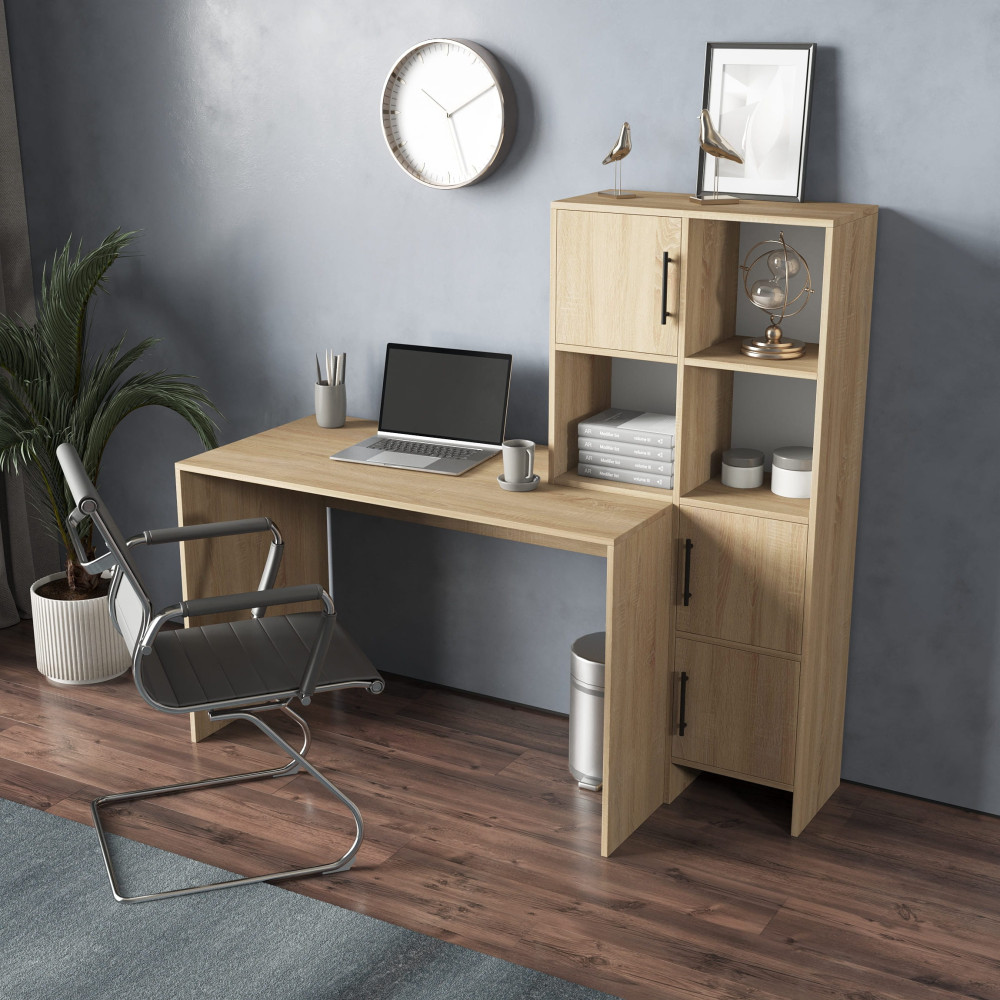 Компьютерный стол письменный со стеллажом с дверками Дуб Сонома