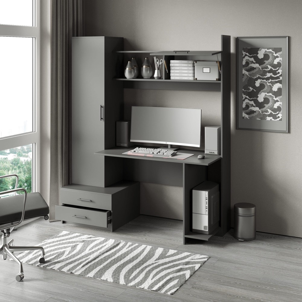 Компьютерный стол с пеналом и надстройкой Антрацит