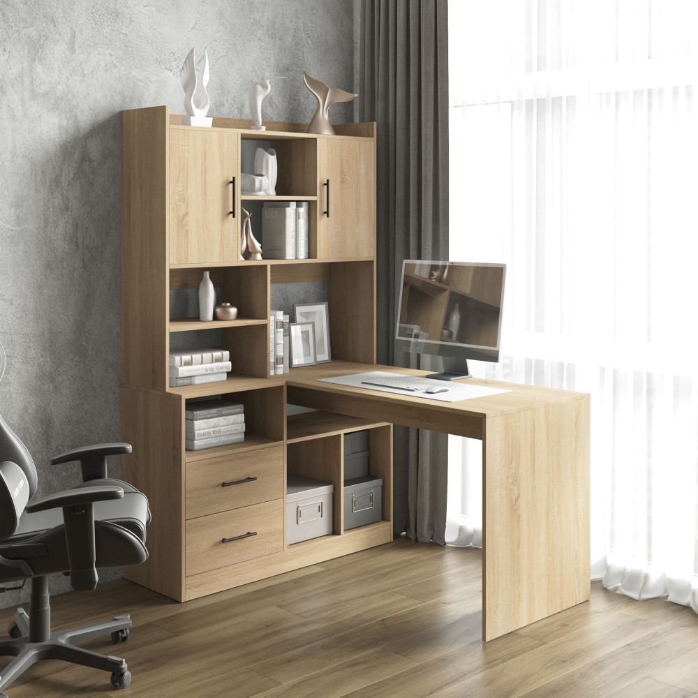 Компьютерный угловой стол со стеллажом Дуб Сонома