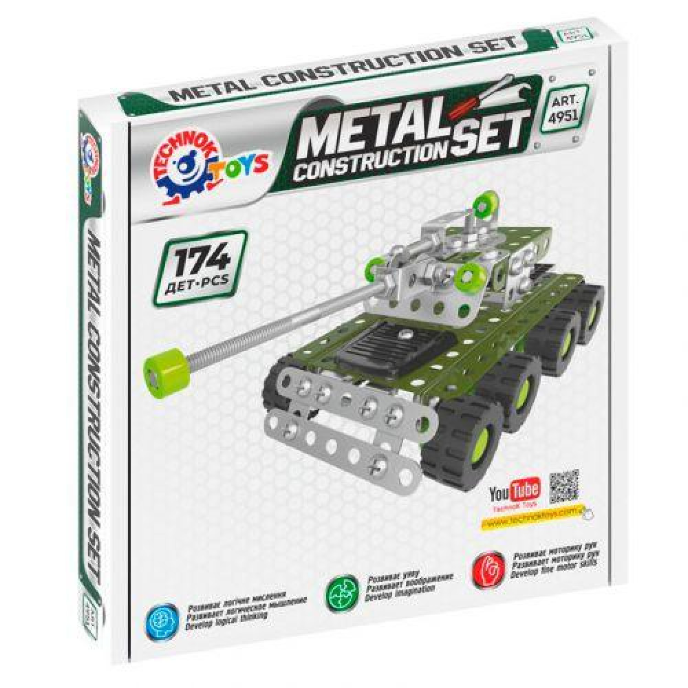 Металлический конструктор "Танк" на 174 детали. Благодаря этой игрушке ребёнок получает первые навыки соединения деталей винтами и гайками, развивает фантазию и пространственное воображение._