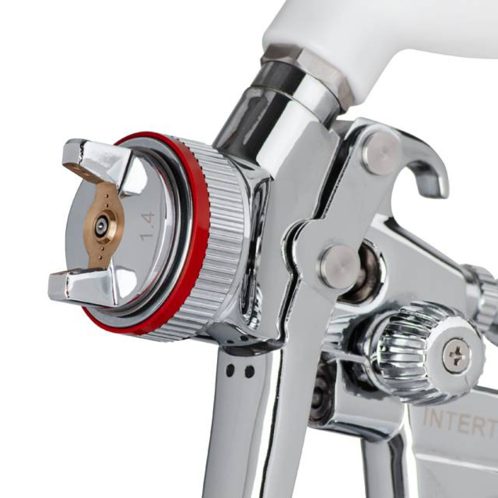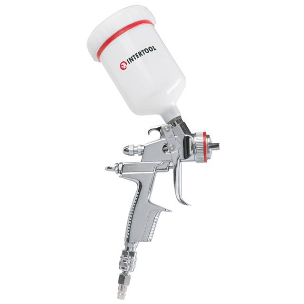 Профессиональный краскопульт PT-0100 нового поколения HVLP II — это инструмент, предназначен для качественной обработки поверхности акриловыми и водорастворимыми красками, нитрокрасками, металликами и неметалликами, перламутрами, различными типами грунтовок, шпаклевками жидкой консистенции и пр. Технология HVLP предполагает использование больших объемов воздуха при низком давлении. Таким образом, точная форсунка данного пистолета (диаметр сопла — 1,4 мм) и уменьшение давления в воздушной головке (рабочее давление до 2 Атм) позволяют максимально снизить туманообразование и увеличить эффективность переноса ЛКМ на поверхность (до 75%). Регулировка форсунки дает возможность применять либо плоский, либо овальный факел. Широкий (27 см), плотный, однородный факел обеспечивает равномерность распыления частиц (оптимальное расстояние до окрашиваемой поверхности 13-18 см). Экономия материала с технологией HVLP II, по отношению к стандартным пистолетам, достигает 30-40%. Краскопульт имеет достаточно вместимый пластиковый бачок с верхним расположением и ёмкостью 600 мл.