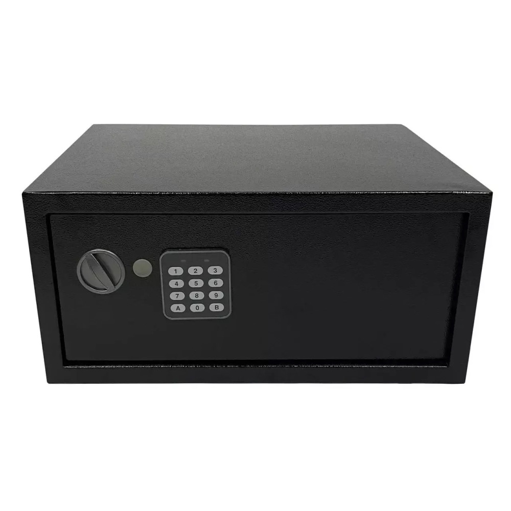 Покрыт порошковой краской черного цвета, которая придает дополнительную защиту от коррозии. Сейф отлично дополнит любое современное помещение.