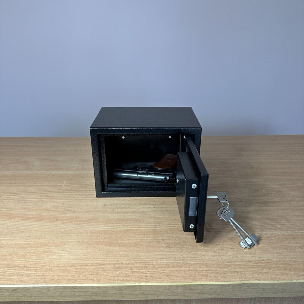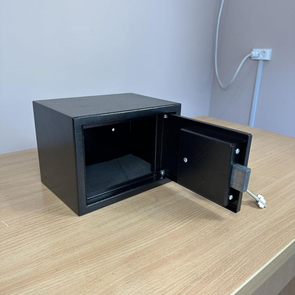 Покрыт порошковой краской черного цвета, которая придает дополнительную защиту от коррозии. Сейф отлично дополнит любое современное помещение.