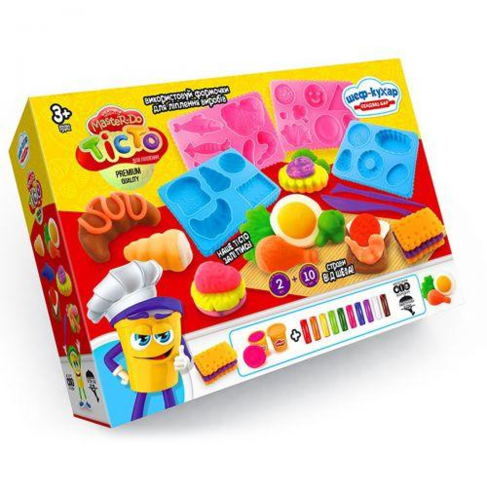 Тесто для лепки - 10 брикетов, Тесто для лепки - 3 баночки, формочки для лепки - 4 шт., комплект стеков, коврик - 1 шт, инструкция - 1 шт |