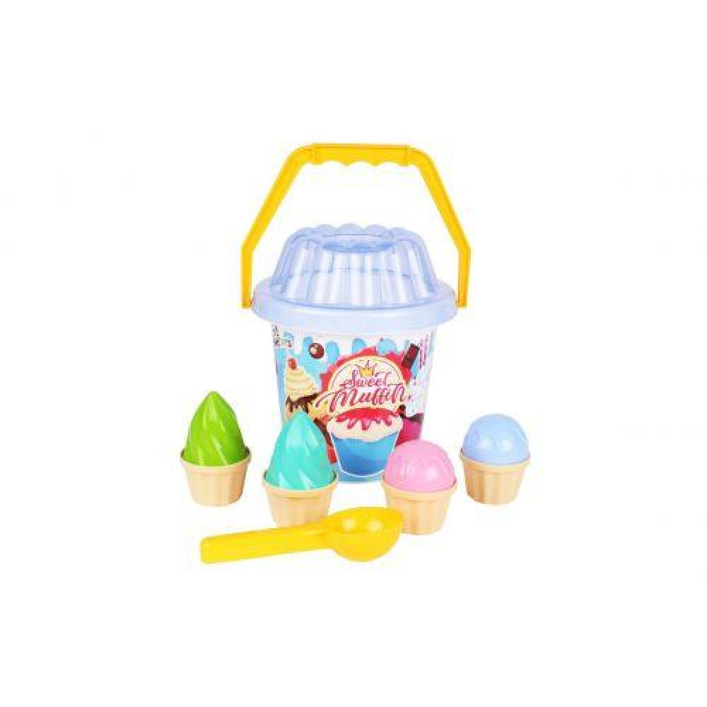 ведро, прозрачное сито, 5 формочек для песка |