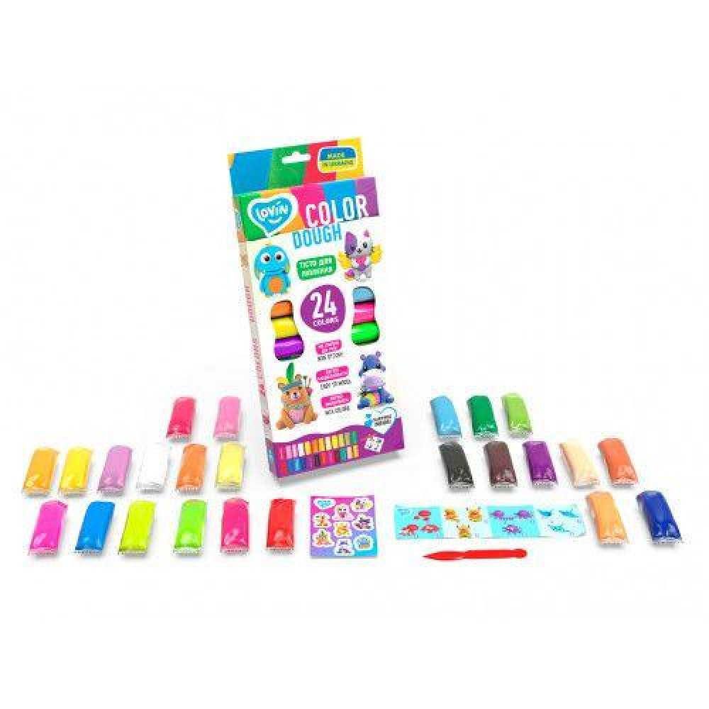 24 цвета теста, пластиковый нож и сюрприз |