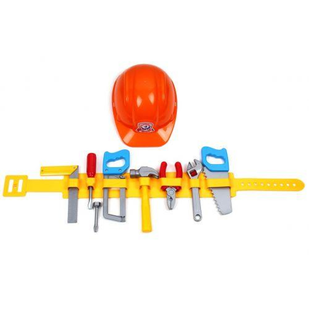 Комплектация: Каска, пояс, плоскогубцы, пила по металлу и пила по дереву, уголок, молоток, разводной ключ, отвертка с двумя насадками