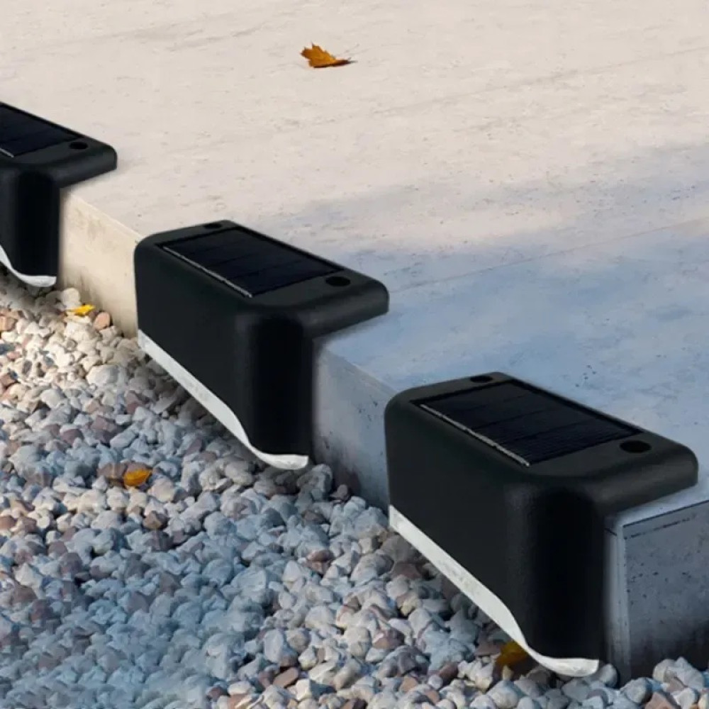 4 x солнечные светодиодные фонари SuperLED для лестницы/террасы; Встроенный аккумулятор в каждом фонаре; Монтажные отверстия |