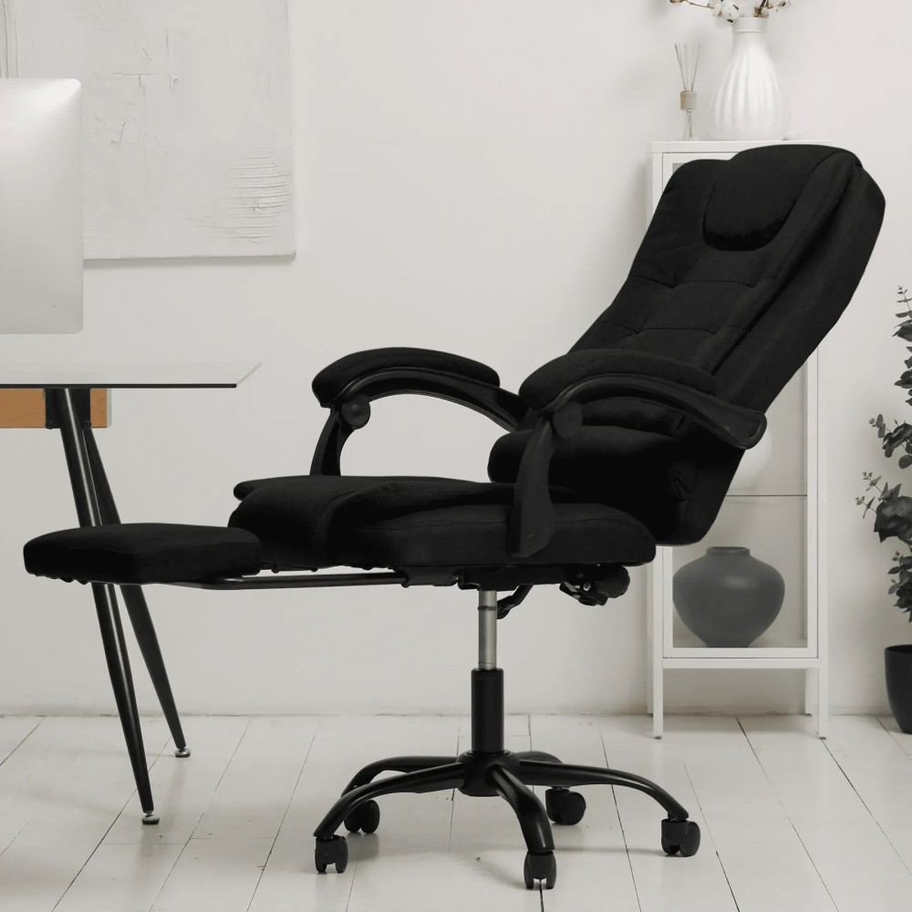 Для большего комфорта кресло оснащено подушкой под голову, поддержкой поясницы, откидной спинкой и выдвижной подставкой для ног — идеальный выбор для работы за компьютером, учебы, просмотра фильмов или короткого отдыха. Мягкие подлокотники добавляют удобства, а ткань легко очищается и сохраняет презентабельный вид. Выдерживает нагрузку до 150 кг и подходит для офиса, домашнего кабинета или переговорных комнат.