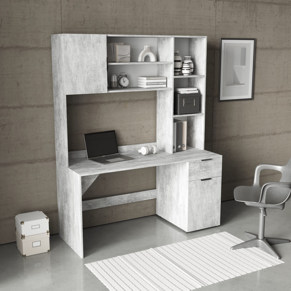 Офисный, письменный стол с надстройкой Бетон