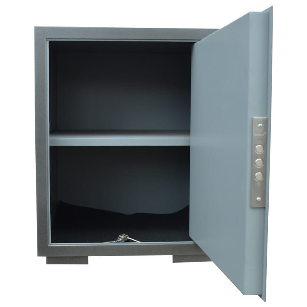 Офисный сейф предназначен для хранения денег, документов и ценностей. Корпус сейфа усилен полосой со стороны двери, что придает конструкции дополнительную жесткость и повышает уровень устойчивости ко взлому. Двери данного сейфа выполнены заподлицо. Конструкция корпуса выполнена из листов стали толщиной 2,0 мм (корпус) и 3,0 мм (дверная плита). Дверь сейфа двойная толщиной 35,0 мм.