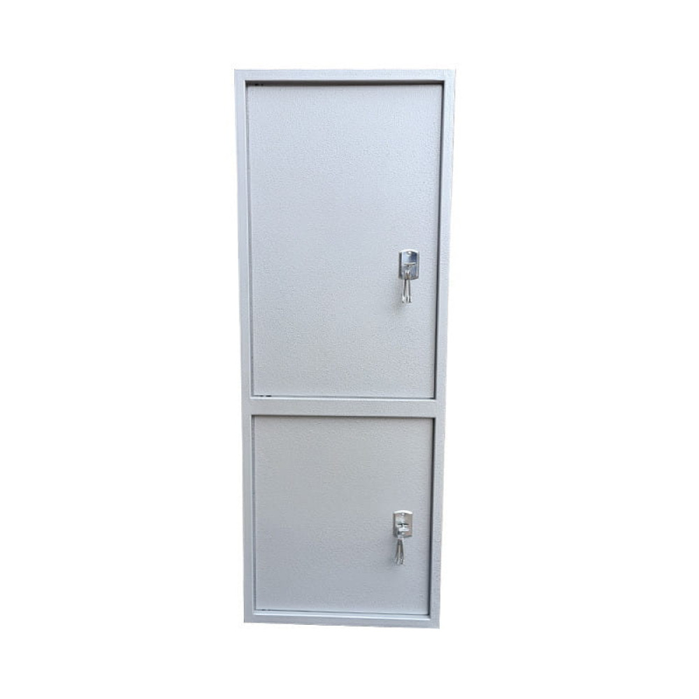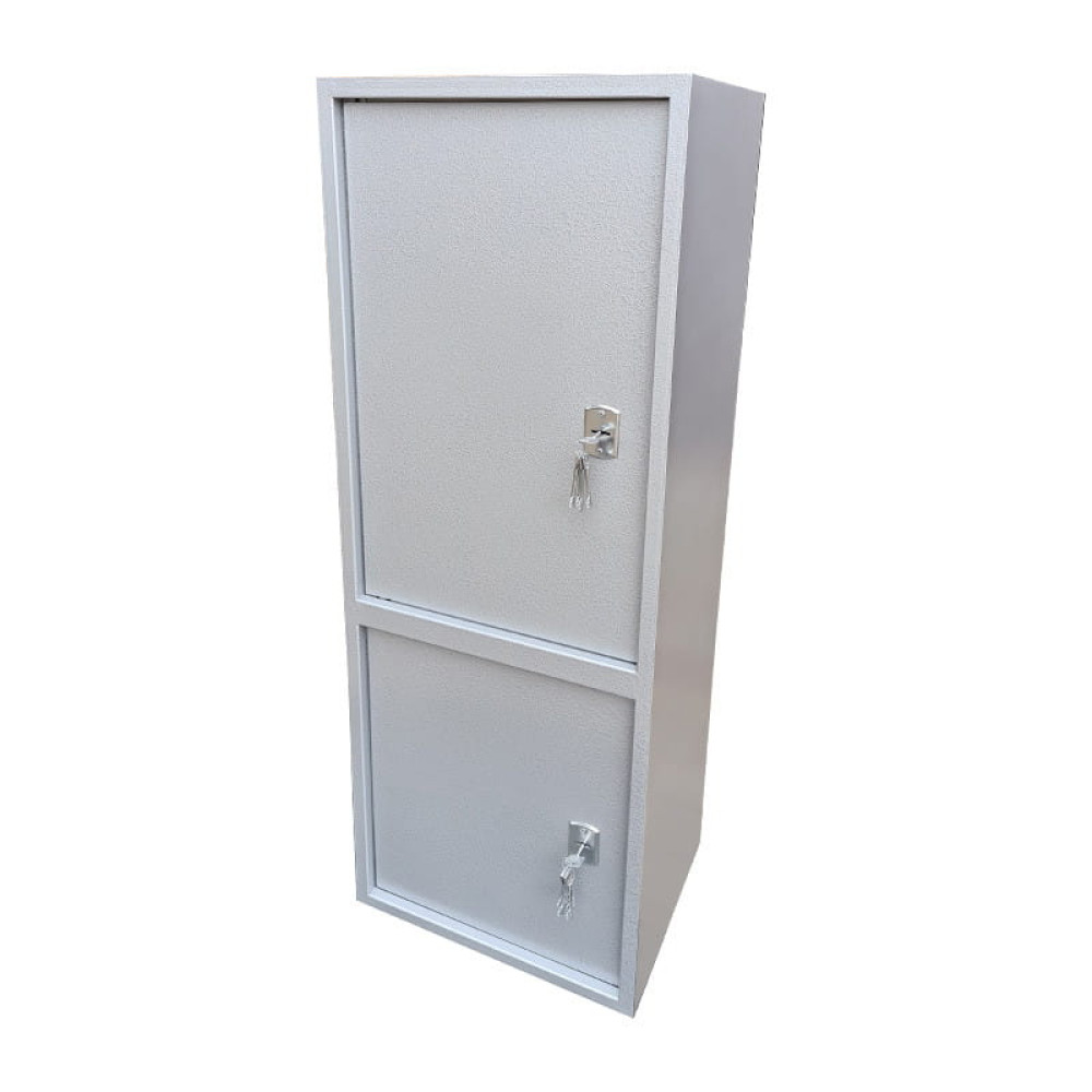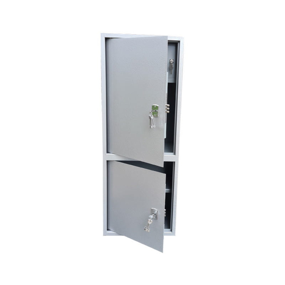Двери каждого отделения закрывается на механический ключевой замок, замок на 3 ригеля по 10 мм диаметром каждый, выход в горизонтальной плоскости. Это надежный ключевой замок сувальдного типа, он защитит ваше имущество от посторонних. С внутренней стороны двери замки закрытого типа.