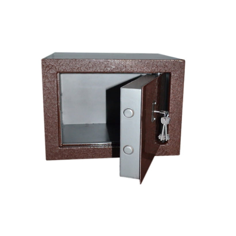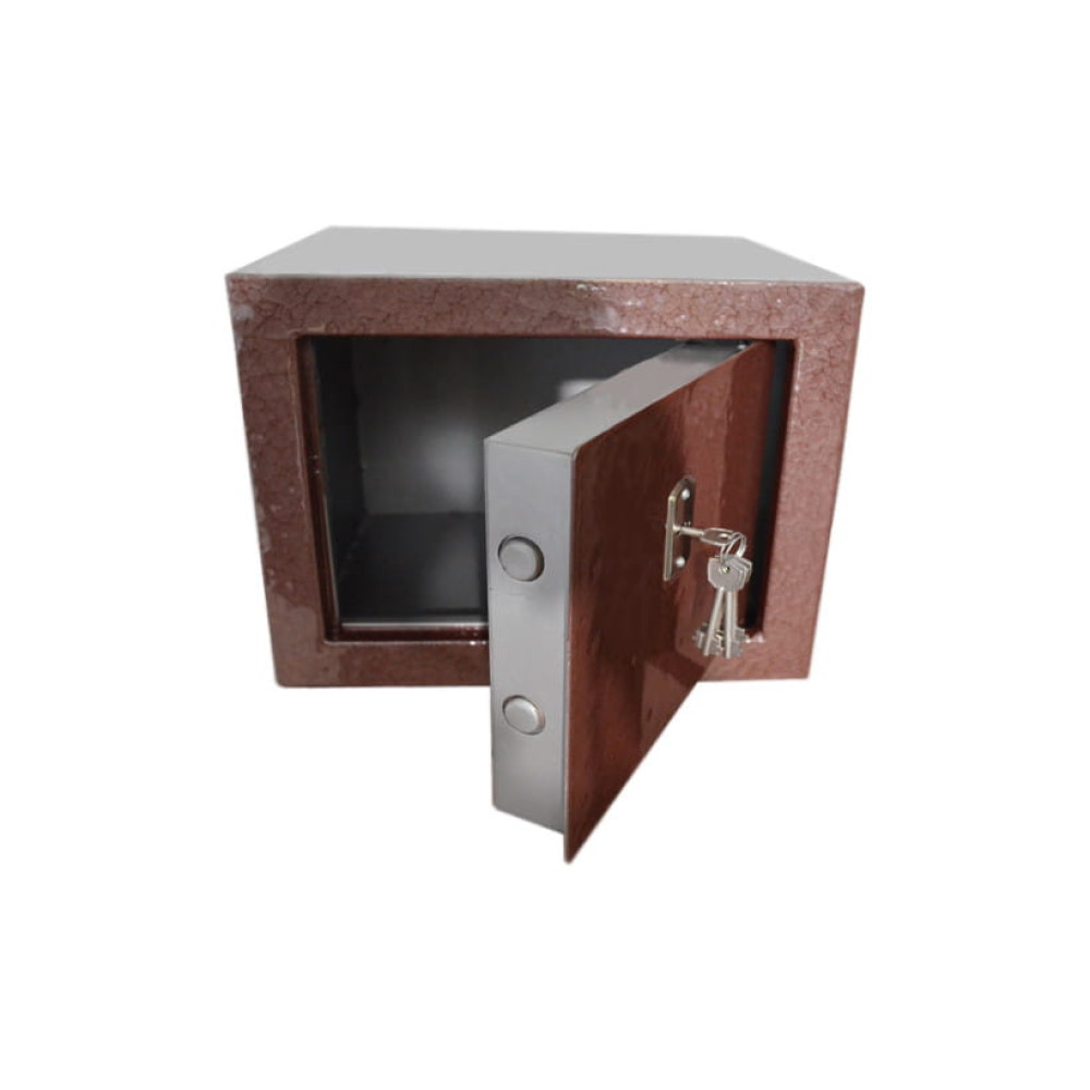 Офисный сейф окрашен краской с молотковым и перламутровым эффектом. Покрытие износостойкое, удобное в эксплуатации, защищает сейф от коррозии. Стандартный цвет: коричневый. Возможно окрашивание в другие цвета по согласованию.