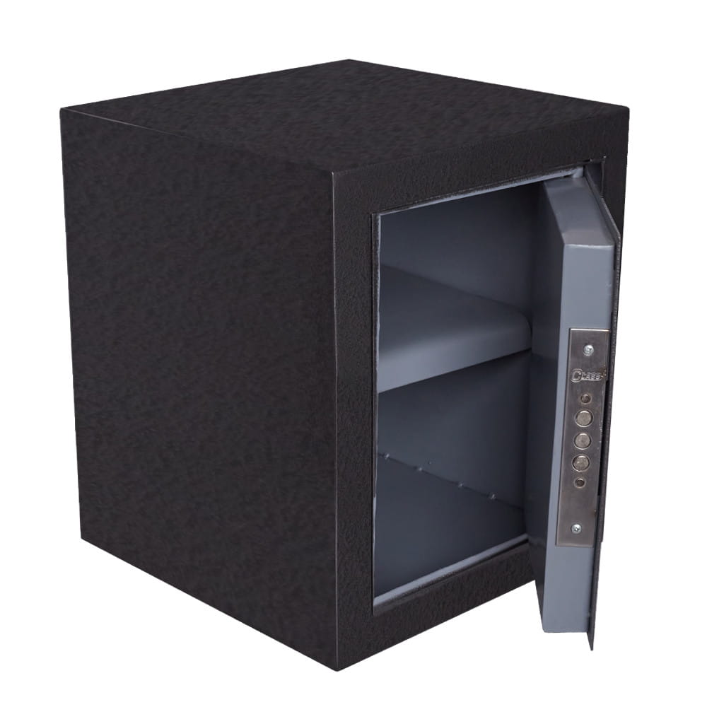 Сейф оснащен съемной полкой, делящей сейф на два отделения.
