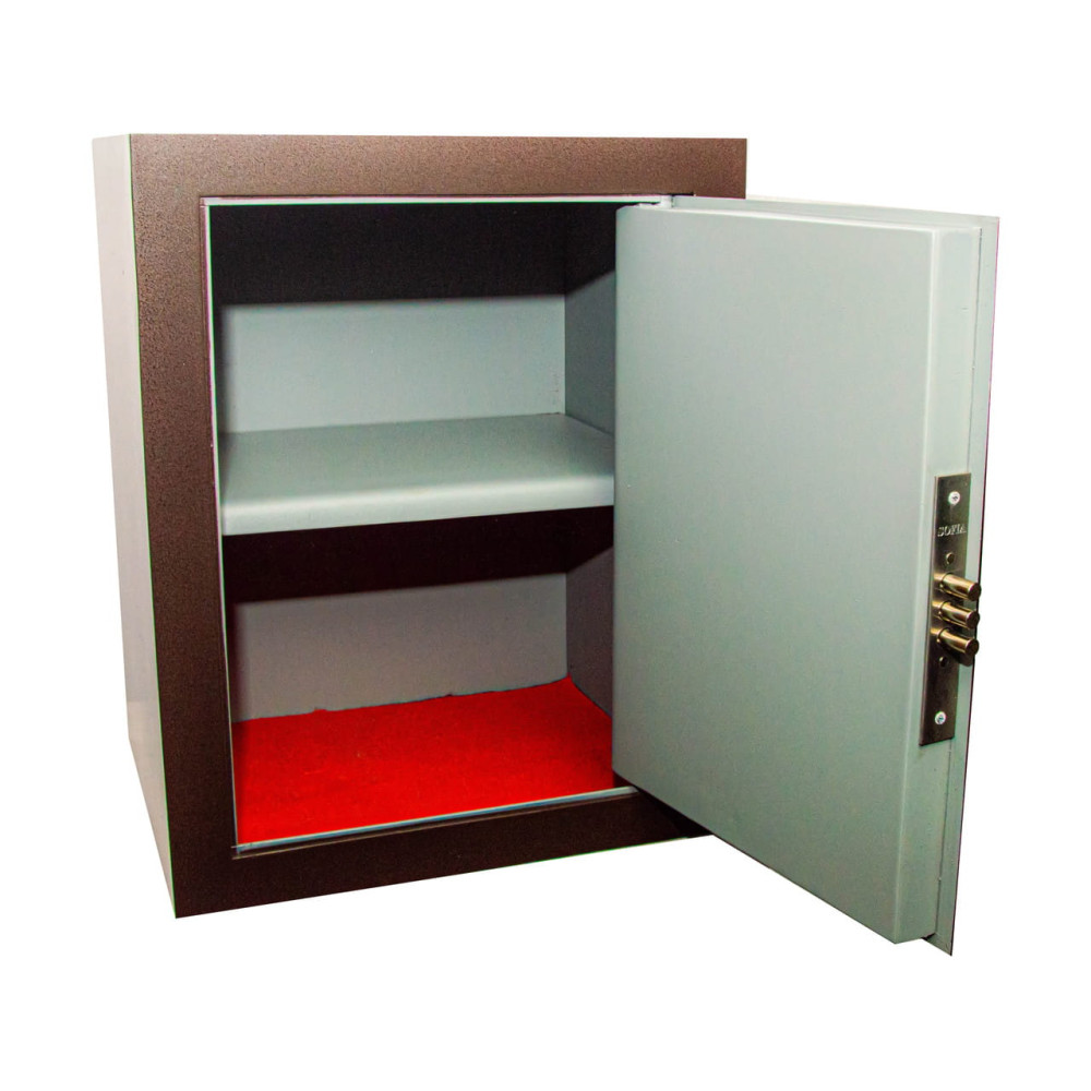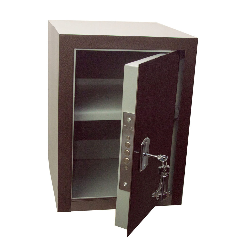 Офисный сейф предназначен для хранения денег, документов и ценностей. Корпус офисного сейфа усилен полосой со стороны двери, что придает конструкции дополнительную жесткость и повышает уровень устойчивости ко взлому. Дверь данного сейфа выполнена заподлицо. Конструкция корпуса выполнена из листов стали толщиной 2,0 мм (корпус) и 2,0 мм (дверная плита).