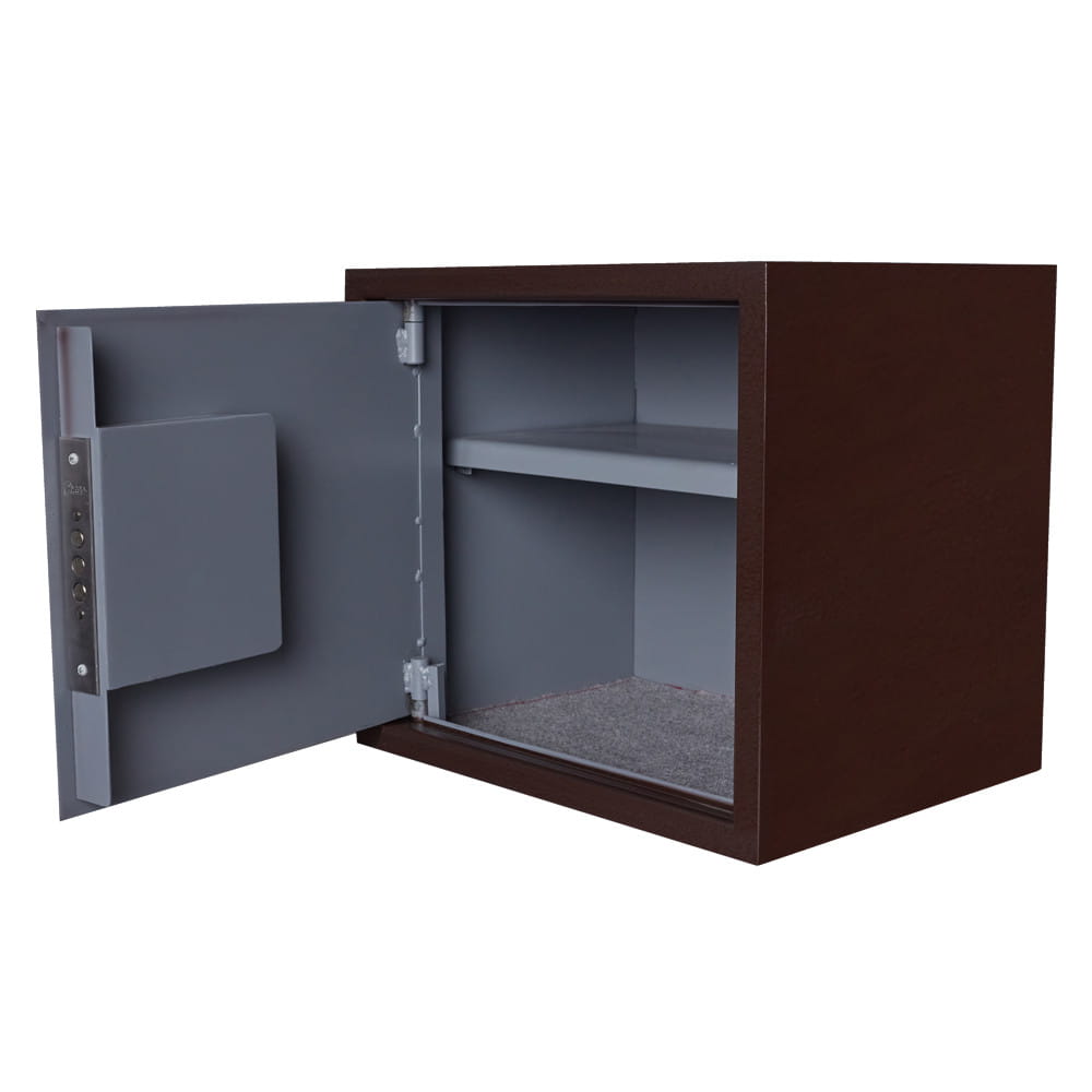 Сейф офисный окрашен краской с молотковым и перламутровым эффектом. Покрытие износостойкое, удобное в эксплуатации, защищает сейф от коррозии. Стандартный цвет: коричневый. Возможно окрашивание в другие цвета по согласованию.