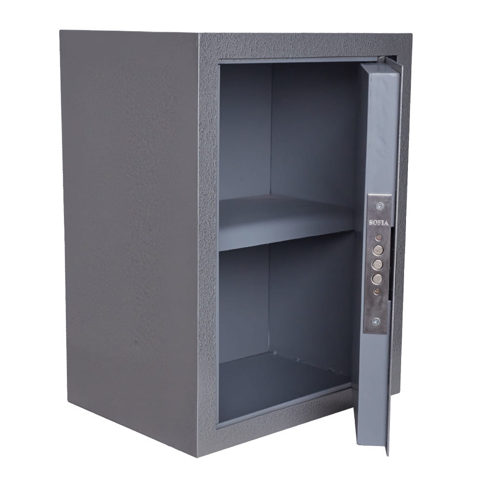Сейф оснащен съемной полкой, делящей сейф на два отделения.
