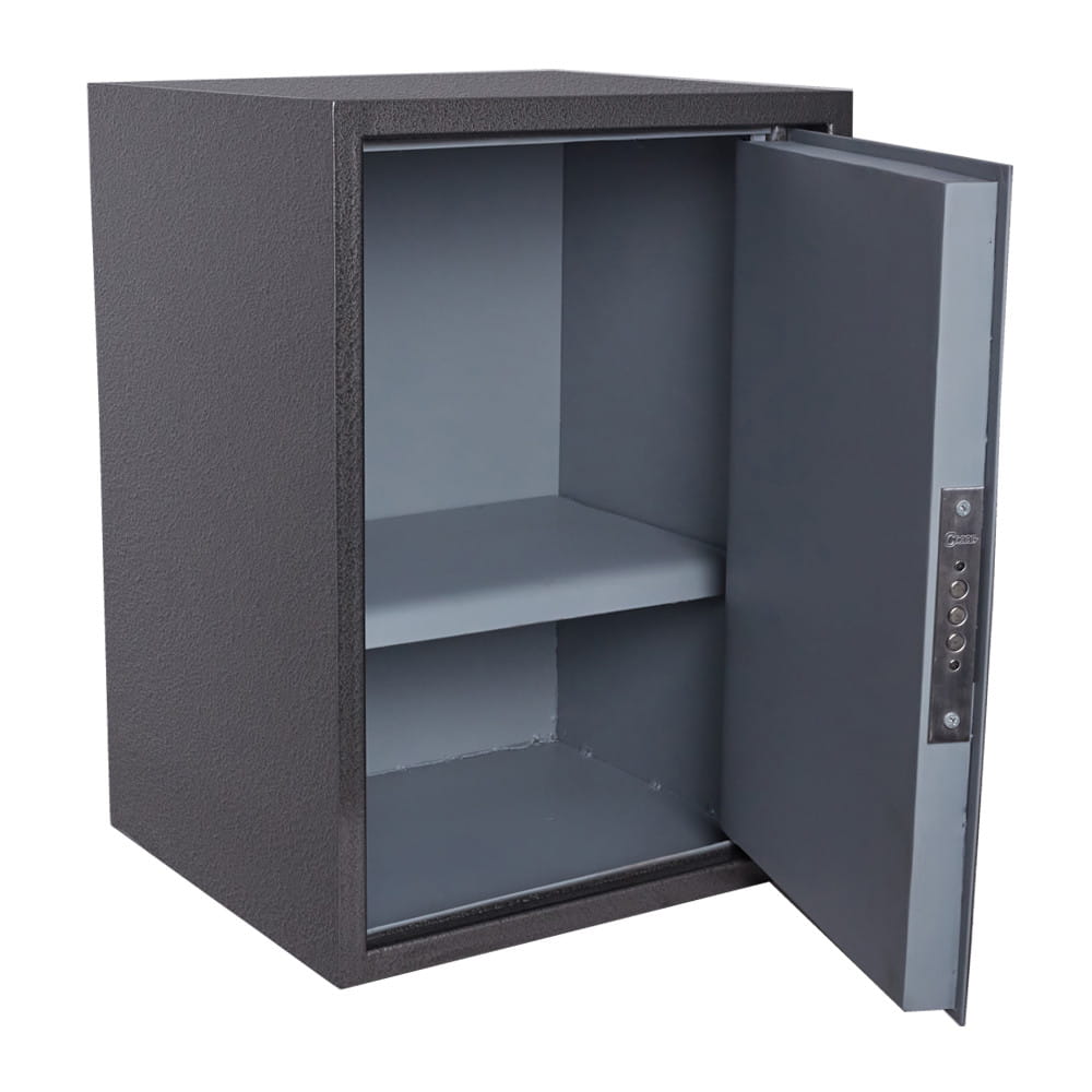 В офисном сейфе имеется съемная полка, делящая сейф на два отделения.