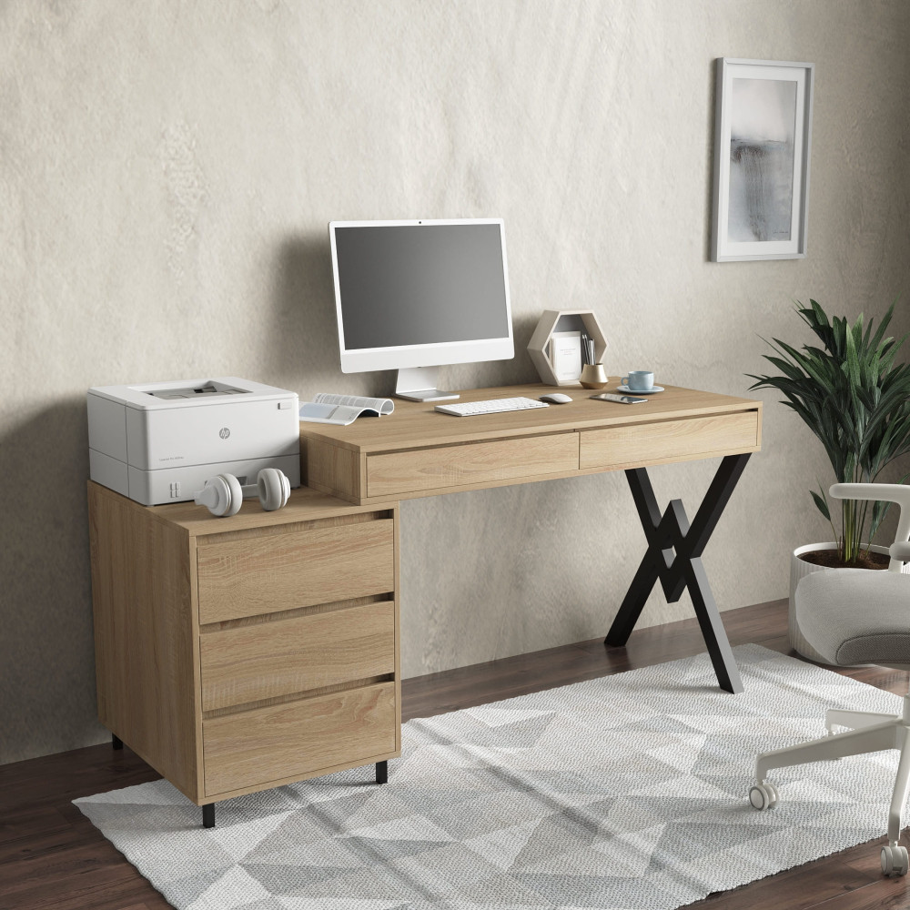 Офисный столик в стиле Лофт с ящиками Дуб Сонома
