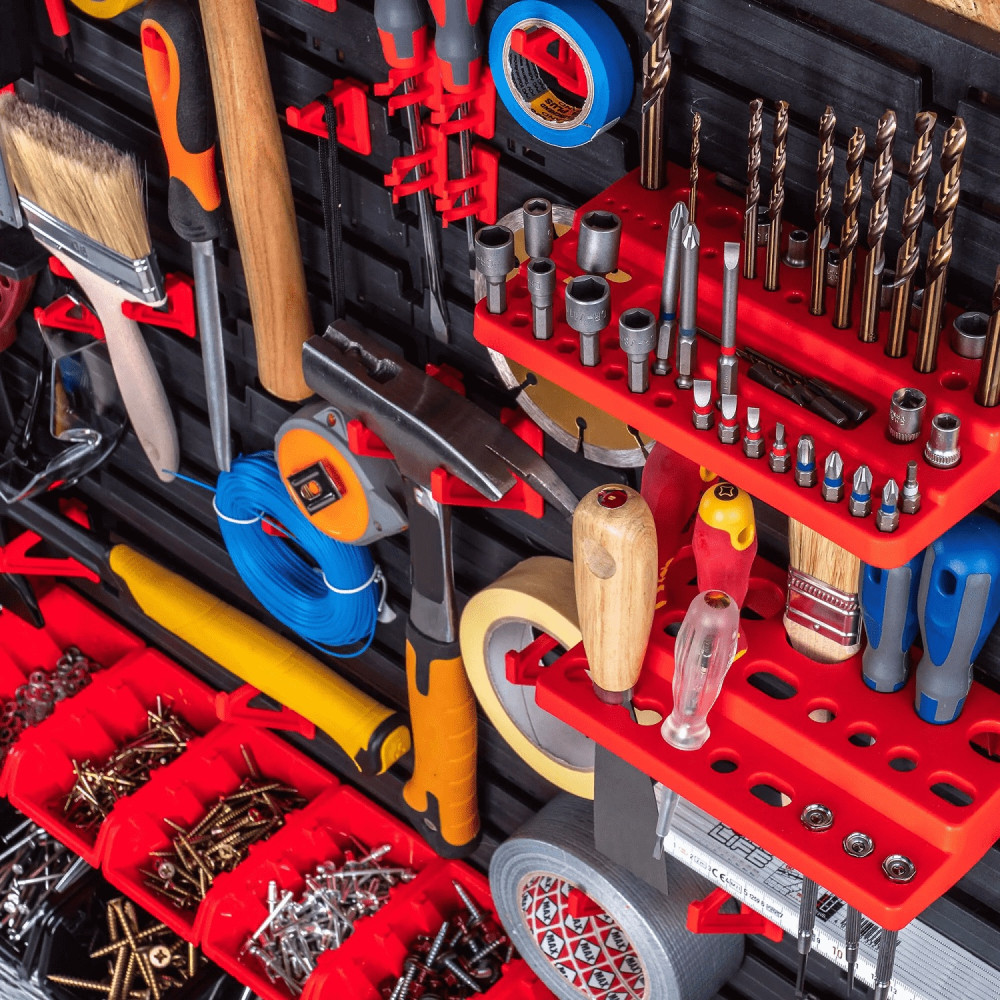 Организуйте рабочее пространство с умом! У нас вы найдете настенные панели для инструментов, перфорированные панели, наборы креплений и держателей.