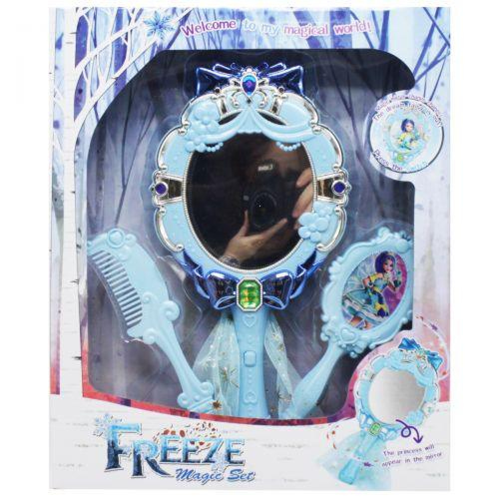Оригинальный подарок для юной леди - парикмахерский набор. В комплект входит: красивое музыкальное зеркальце, гребешок и расческа. Зеркальце оснащено звуковыми и световыми эффектами - воспроизводит множество мелодий, также во время работы включается подсветка и на зеркальце загорается красивый рисунок. Работает на батарейках (не идут в комплекте). Набор выполнен из качественного и безопасного материала.
