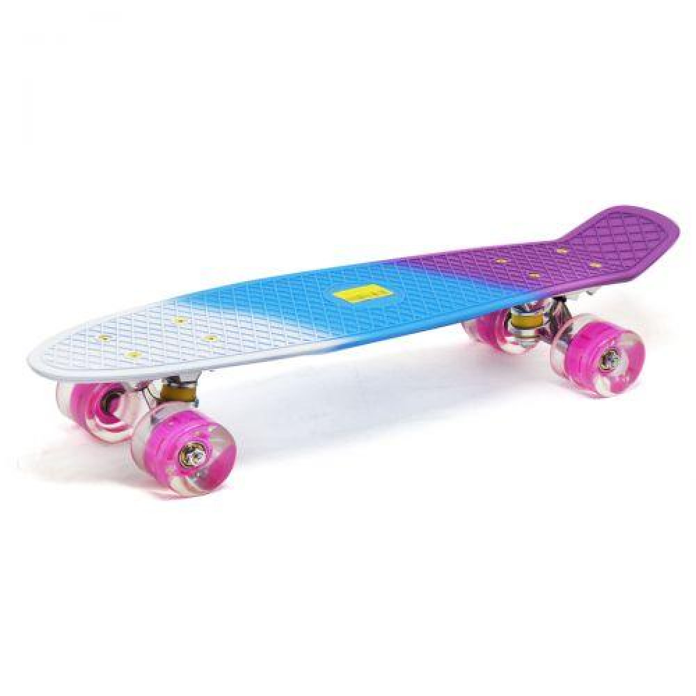 Пенни Борд. Легкая дека сделана из прочного формованного пластика. Длинна деки - 56 см., ширина - 15 см. Колёса PU, со светом, d=6 см. Максимальная нагрузка до 70 кг.