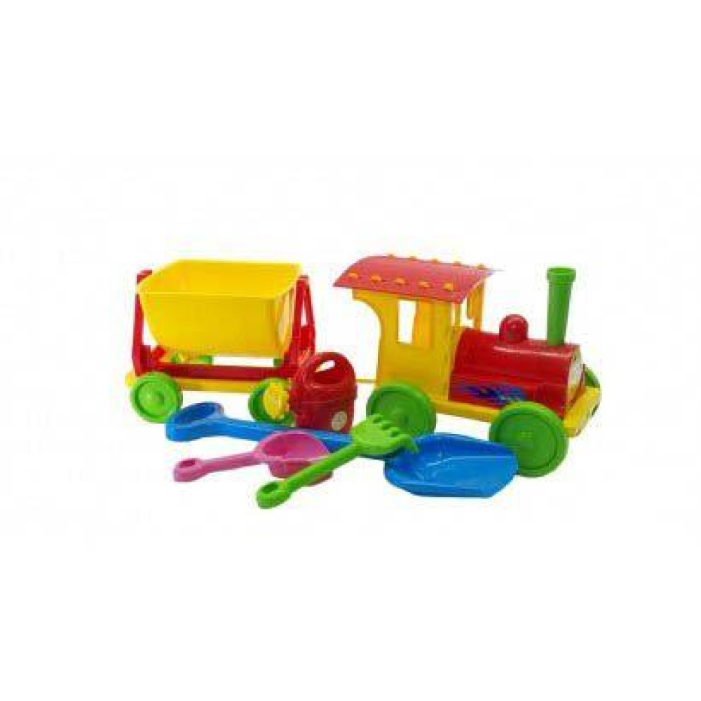 Трактор, прицеп, лейка, лопата, лопатка маленькая, грабли |
