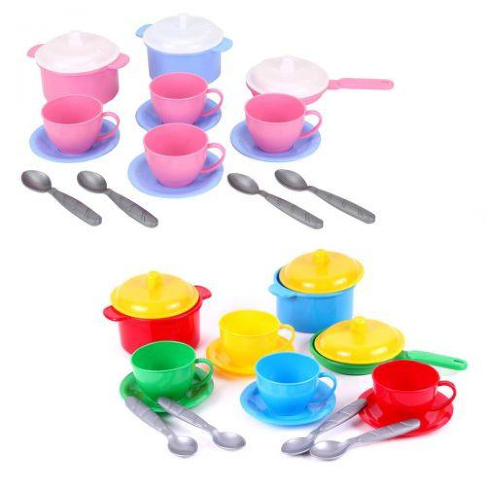 4 чашки, блюдечко и ложечка, сковородка и 2 кастрюли |