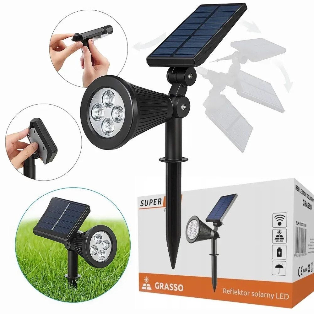 SuperLED Grasso – это современное решение для уличного освещения, сочетающее мощность, функциональность и стиль. Прожектор легко устанавливается и работает автономно благодаря солнечной панели, обеспечивая яркую и эффективную подсветку вашего сада. Идеальный выбор для тех, кто ценит практичность и эстетику.