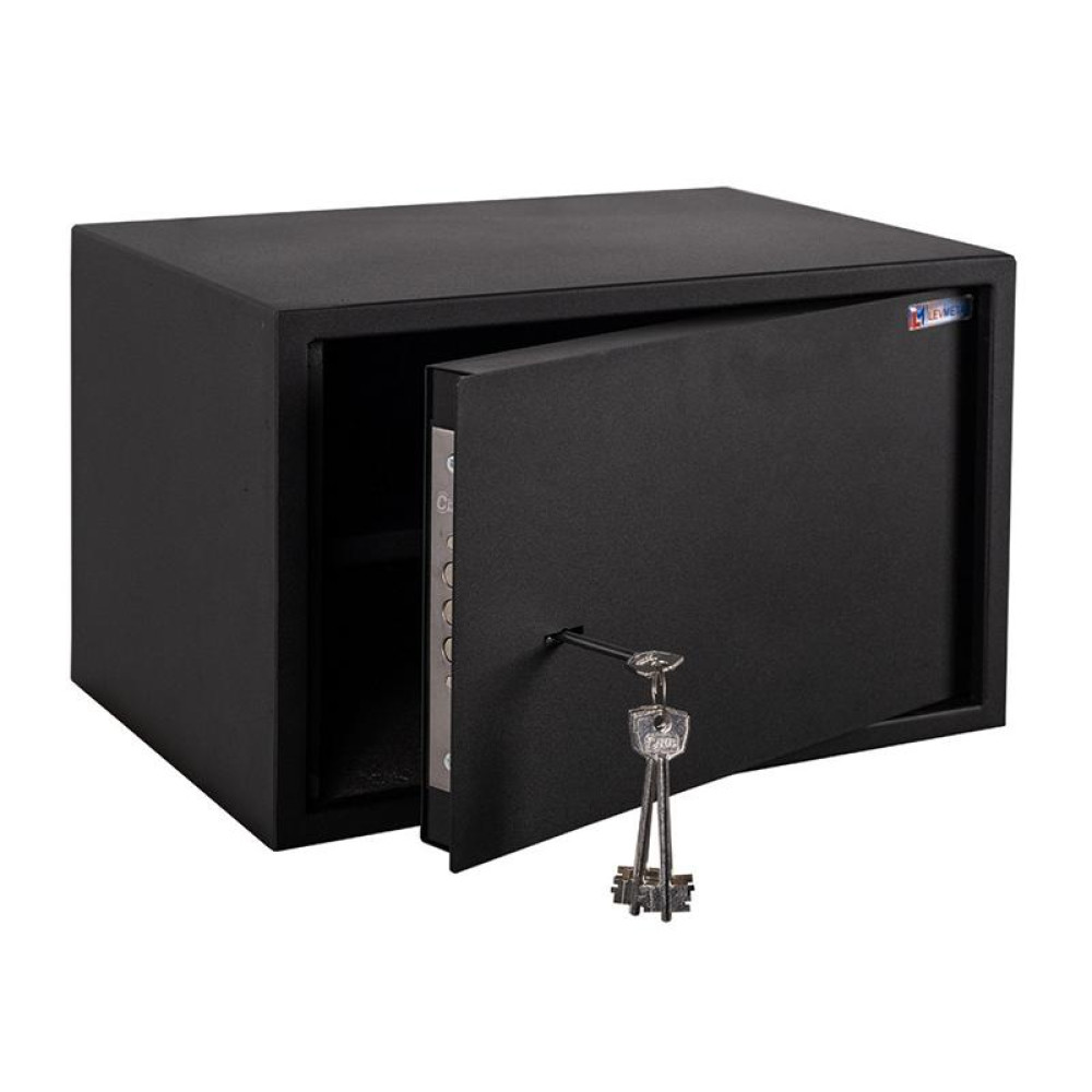 Сейф для хранения денег Черный 235x385x270 мм ГАЛЛА относится к категории мебельных, поскольку компактные размеры позволяют разместить его внутри шкафов, комодов или тумб.