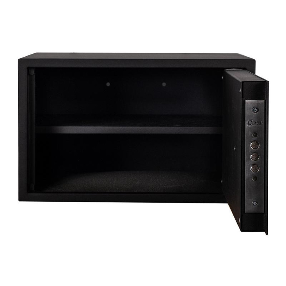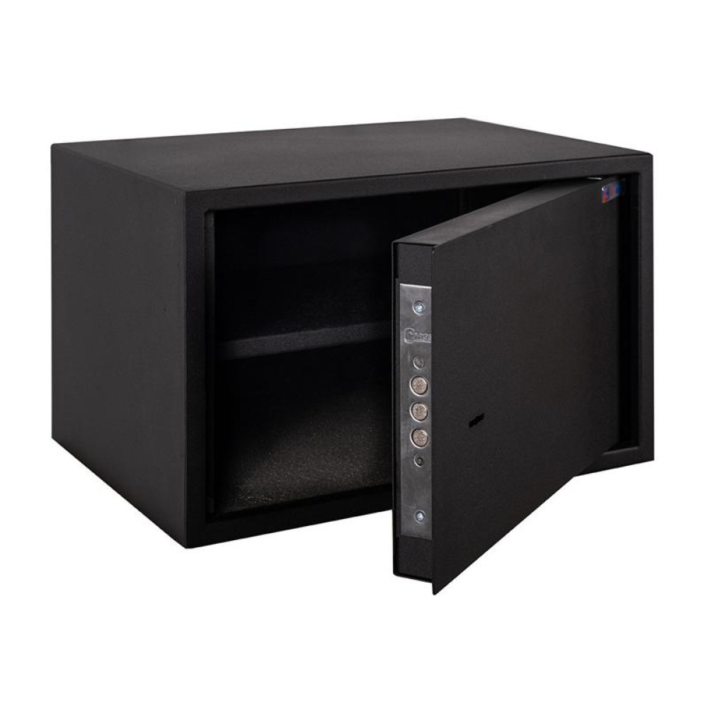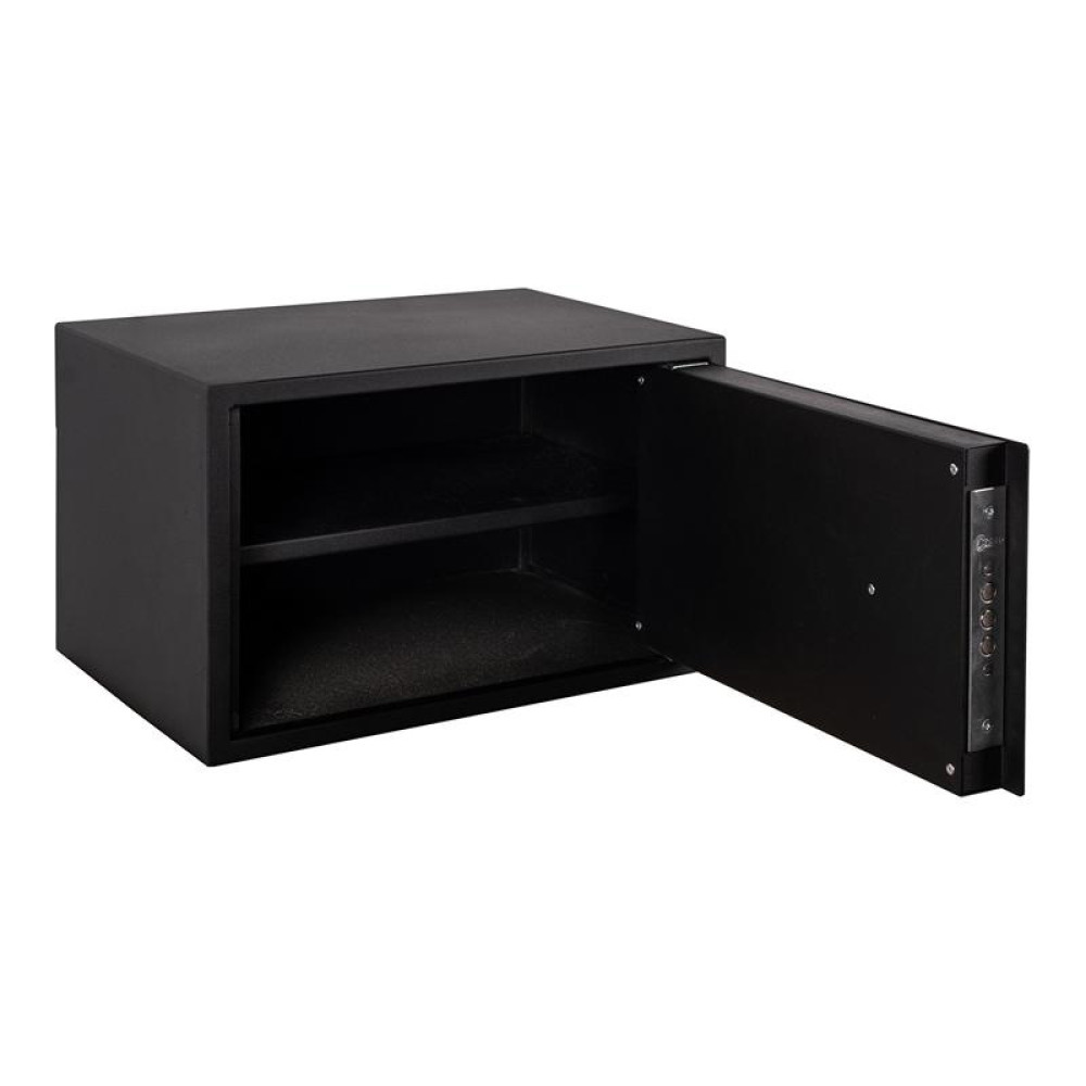 Покрыт порошковой краской черного цвета, которая придает дополнительную защиту от коррозии. Сейф отлично дополнит любое современное помещение.