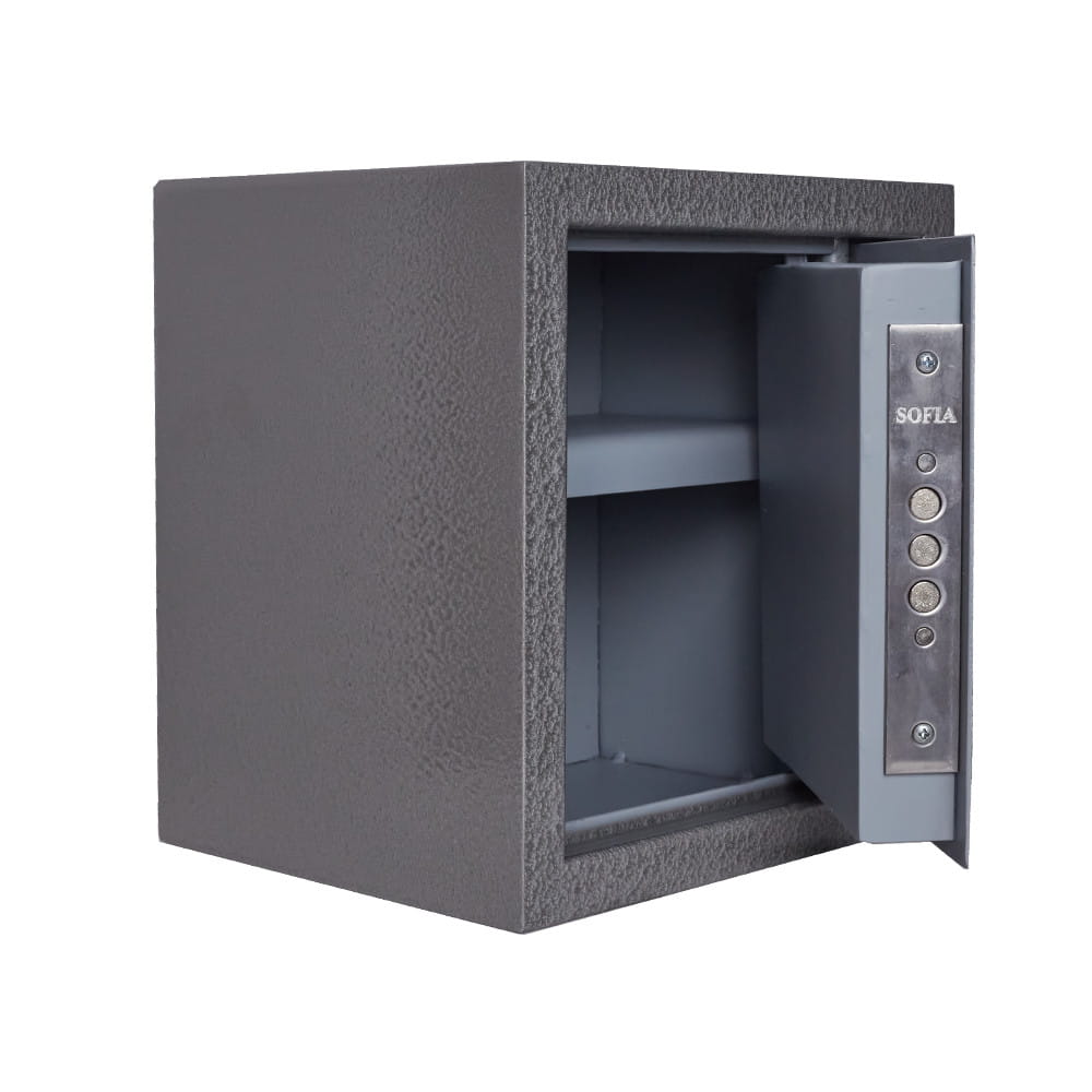 Сейф оснащен съемной полкой, делящей сейф на два отделения.