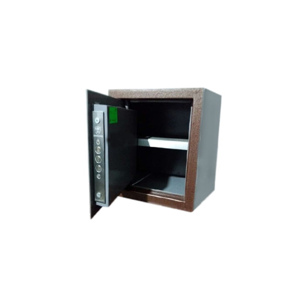 Сейф мебельный окрашен краской с молотковым и перламутровым эффектом. Покрытие износостойкое, удобное в эксплуатации, защищает сейф от коррозии. Стандартный цвет: коричневый. Возможно окрашивание в другие цвета по согласованию.