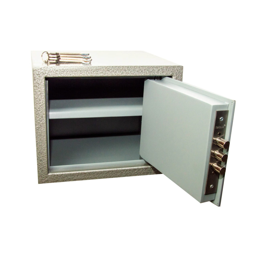Сейф оснащен съемной полкой, делящей сейф на два отделения.