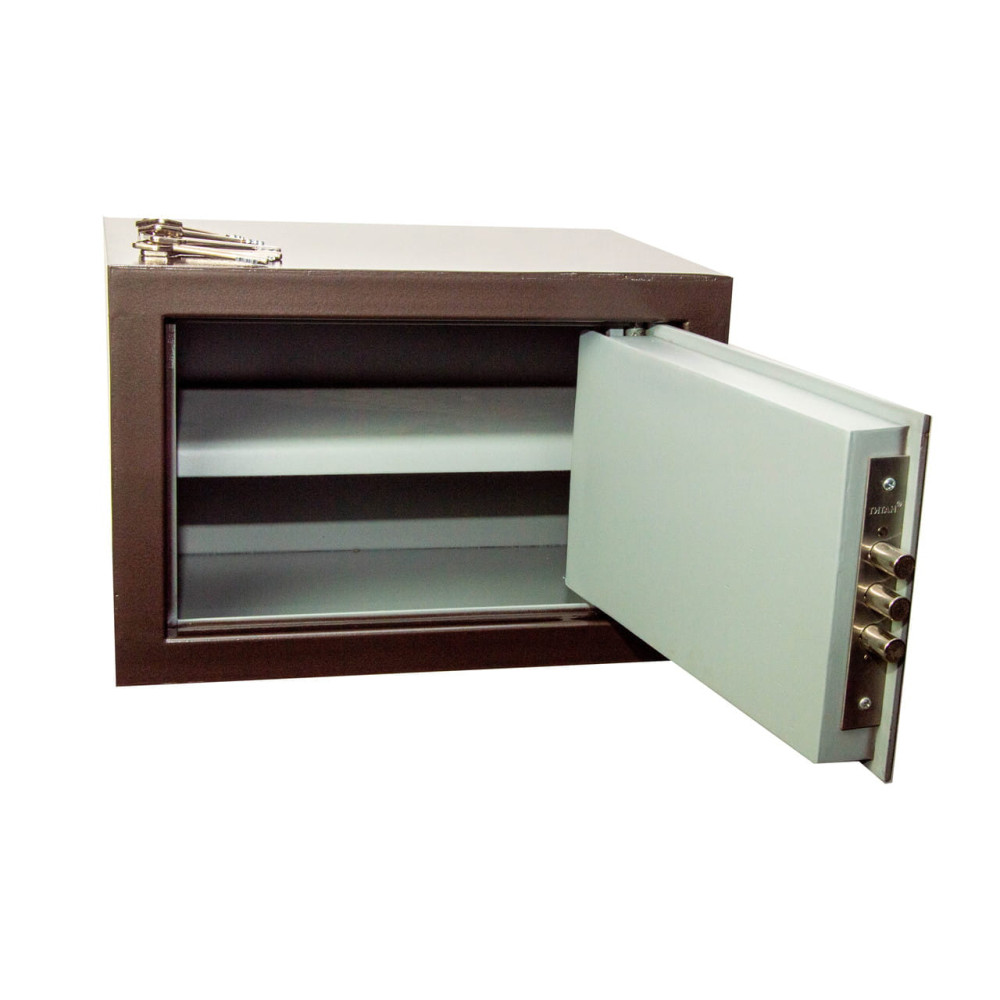 Мебельный сейф предназначен для хранения денег, документов и ценностей. Эта модель предназначена для установки в мебель дома и в офисе. Корпус мебельного сейфа усилен профильной трубой со стороны двери, что придает конструкции дополнительную жесткость и повышает уровень устойчивости ко взлому. Дверь данного сейфа утопленная. Конструкция корпуса выполнена из листов стали толщиной 3,0 мм (корпус) и 5,0 мм (дверная плита). Дверь сейфа двойная, толщина двери 40 мм.