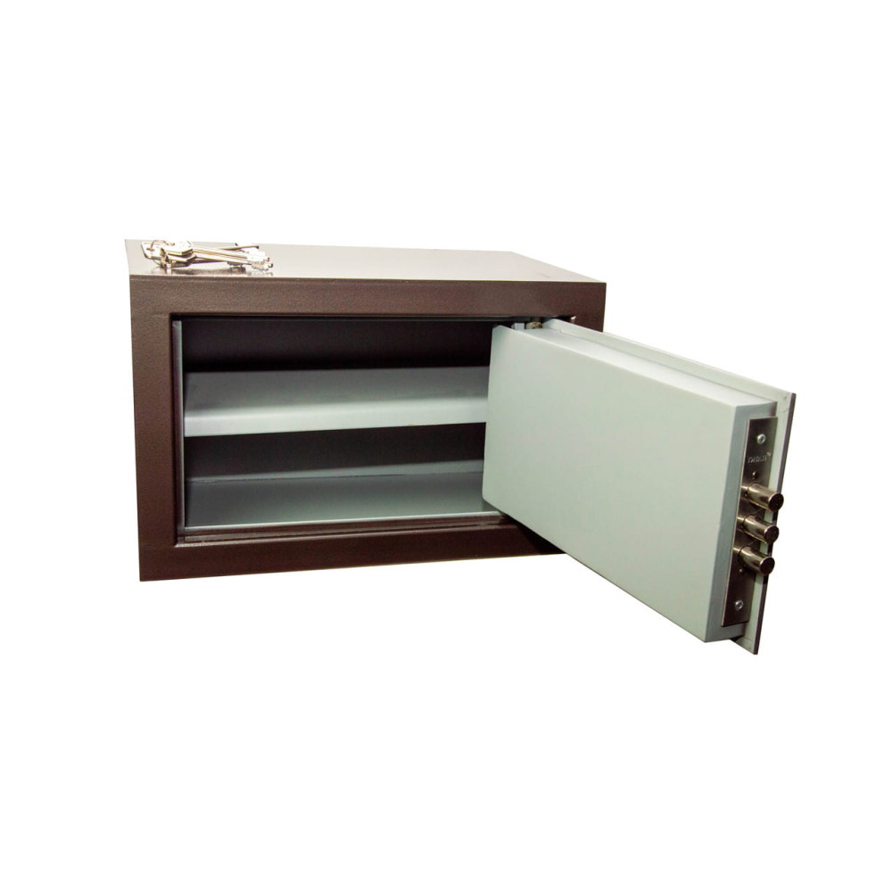 Мебельный сейф предназначен для хранения денег, документов и ценностей. Эта модель предназначена для установки в мебель. Корпус мебельного сейфа усилен профильной трубой со стороны двери, что придает конструкции дополнительную жесткость и повышает уровень устойчивости ко взлому. Дверь данного сейфа утопленного типа, что также увеличивает его надежность. Конструкция корпуса выполнена из листов стали толщиной 2,0 мм (корпус) и 5,0 мм (дверная плита).