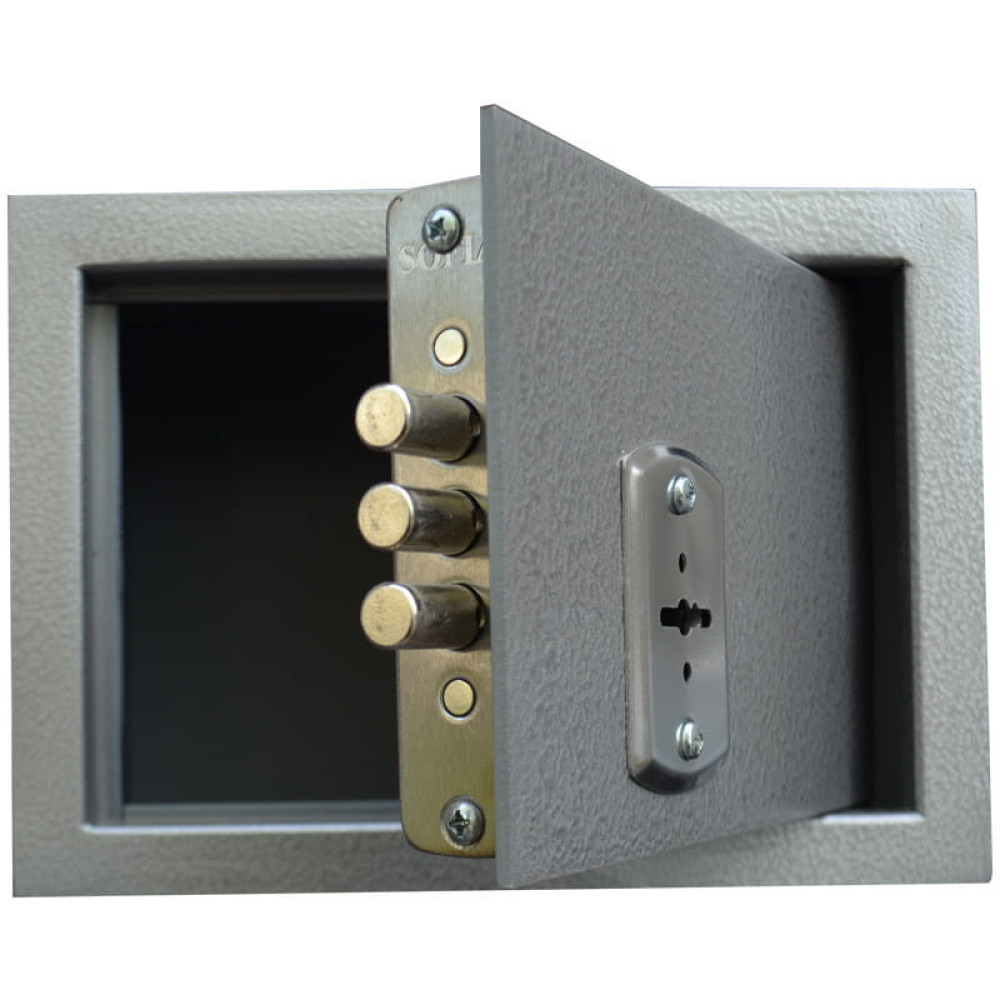 Мебельный сейф предназначен для хранения денег, документов и ценностей. Эта модель предназначена для установки в мебель. Корпус мебельного сейфа усилен профильной трубой со стороны двери, что придает конструкции дополнительную жесткость и повышает уровень устойчивости ко взлому. Дверь данного сейфа утопленного типа, что также увеличивает его надежность. Конструкция корпуса выполнена из листов стали толщиной 2,0 мм (корпус) и 4,0 мм (дверная плита).