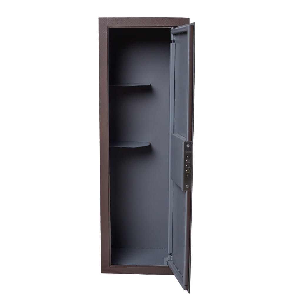 Оружейный сейф СО – 900 ПК окрашен краской с молотковым и перламутровым эффектом. Покрытие износостойкое, удобное в эксплуатации, защищает сейф от коррозии. Стандартный цвет: коричневый. Возможно окрашивание в другие цвета по согласованию.
