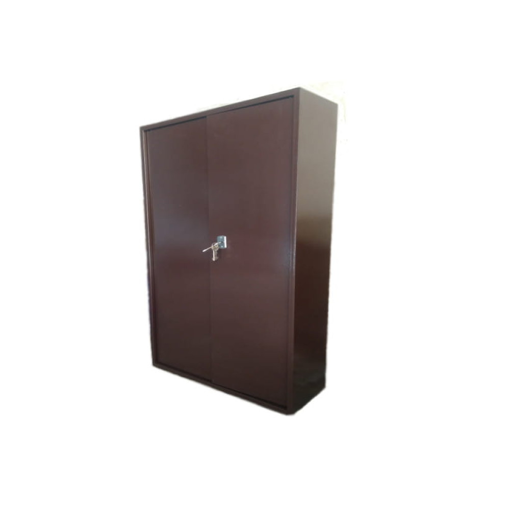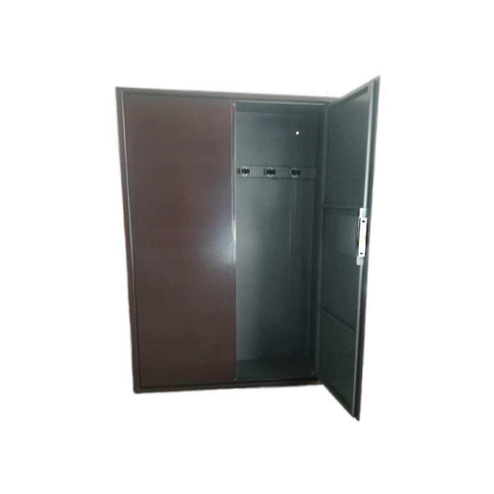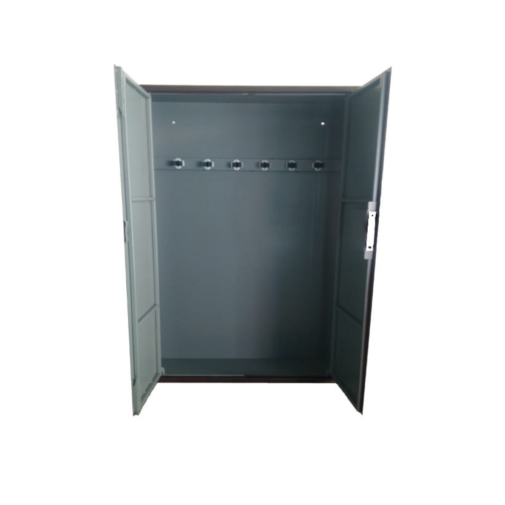 Дверь шкафа двойная утопленного типа, изнутри усилена профильной трубой для дополнительной жесткости. Одна половина двери закрывается на две вертикально установленные защелки, вторая половина двери закрывается на механический ключевой замок сувальдного типа. Замок закрывается на три ригеля диаметром по 14 мм каждый.